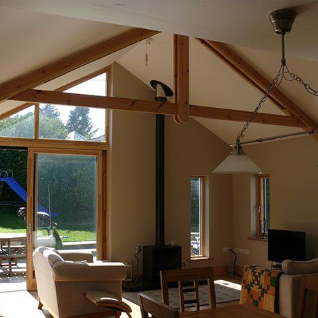 The original cottage was purchased and extended in the mid 1990’s. The existing extension provided a kitchen and small dining room and a separate sitting room. The brief was to extend the kitchen and dining room area out to the garden to create an open plan kitchen dining and living room with a strong connection with the garden.The existing roof pitch was maintained in the extended area with a vaulted ceiling. Floor to ceiling windows were installed to allow light deep into the plan. The extension was insulated to a very high level as was the rest of the building fabric by the owners at an earlier date.