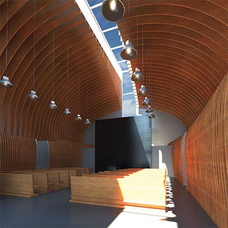 The scheme aims to fulfil the brief by creating a building that will provide a place of Prayer and a comforting and consoling space for mourners attending the cremation ceremonies. It will also to serve as a place of commemoration and remembrance for those who lost their lives in the 1916 Rising.The height and form of the chapel, a simple cube is intended as a marker on the site; to give the site an identity and presence, and to provide a focal point for visitors to the 1916 monument while at the same time, not overwhelming it. Also, through its visibility, the chapel will provide a strong visual connection back to the main cemetery.